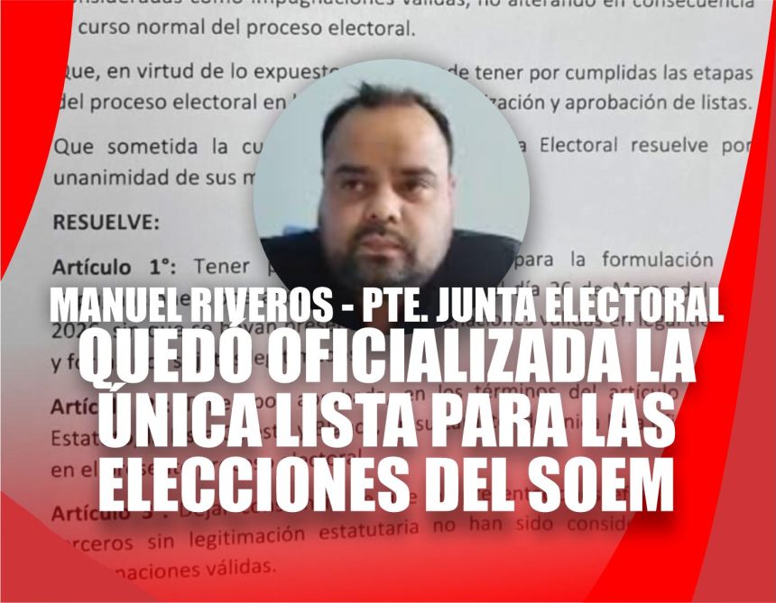 SOEM: EXPLICAN POR QUÉ QUEDÓ UNA SOLA LISTA Y SE DEFINE LA ELECCIÓN