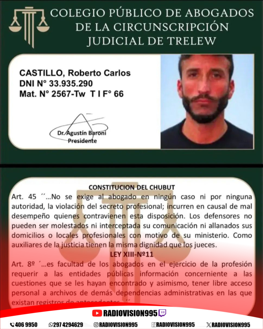 CASTILLO LOGRÓ MATRICULARSE EN CHUBUT Y PODRÁ INTERVENIR EN LA CAUSA ÁNGEL