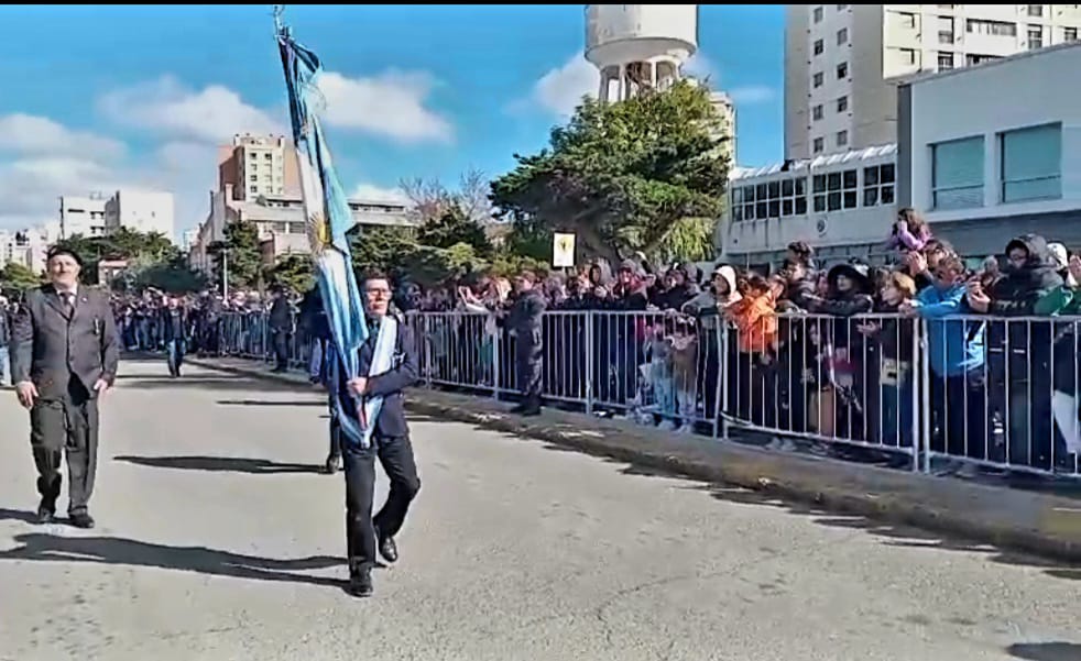 Distintas Fuerzas Militares, grupos de Veteranos de Guerra, Policía del Chubut, Bomberos, escuelas e instituciones de la comunidad participaron en un multitudinario desfile cívico militar en el mediodía de este miércoles, en conmemoración del 43° aniversario de la Gesta de Malvinas.