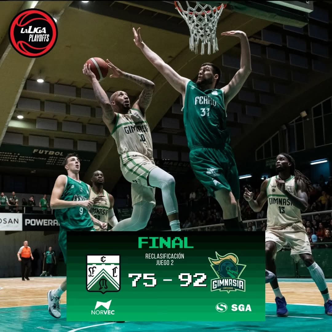 En un encuentro que le fue siempre favorable Gimnasia y Esgrima venció 92-75 a Ferro Carril Oeste en el Héctor Etchard y se quedó con el 2° punto del play off. De esta manera el Verde comodorense logró igualar la serie Reclasificacion de la Liga Nacional de Basquetbol, ahora Gimnasia y Ferro están con una victoria cada uno. Este Jueves 29 desde las 21 hs Gimnasia recibirá a Ferro en el Socios Fundadores cuando se ponga en juego el 3° punto de la serie.