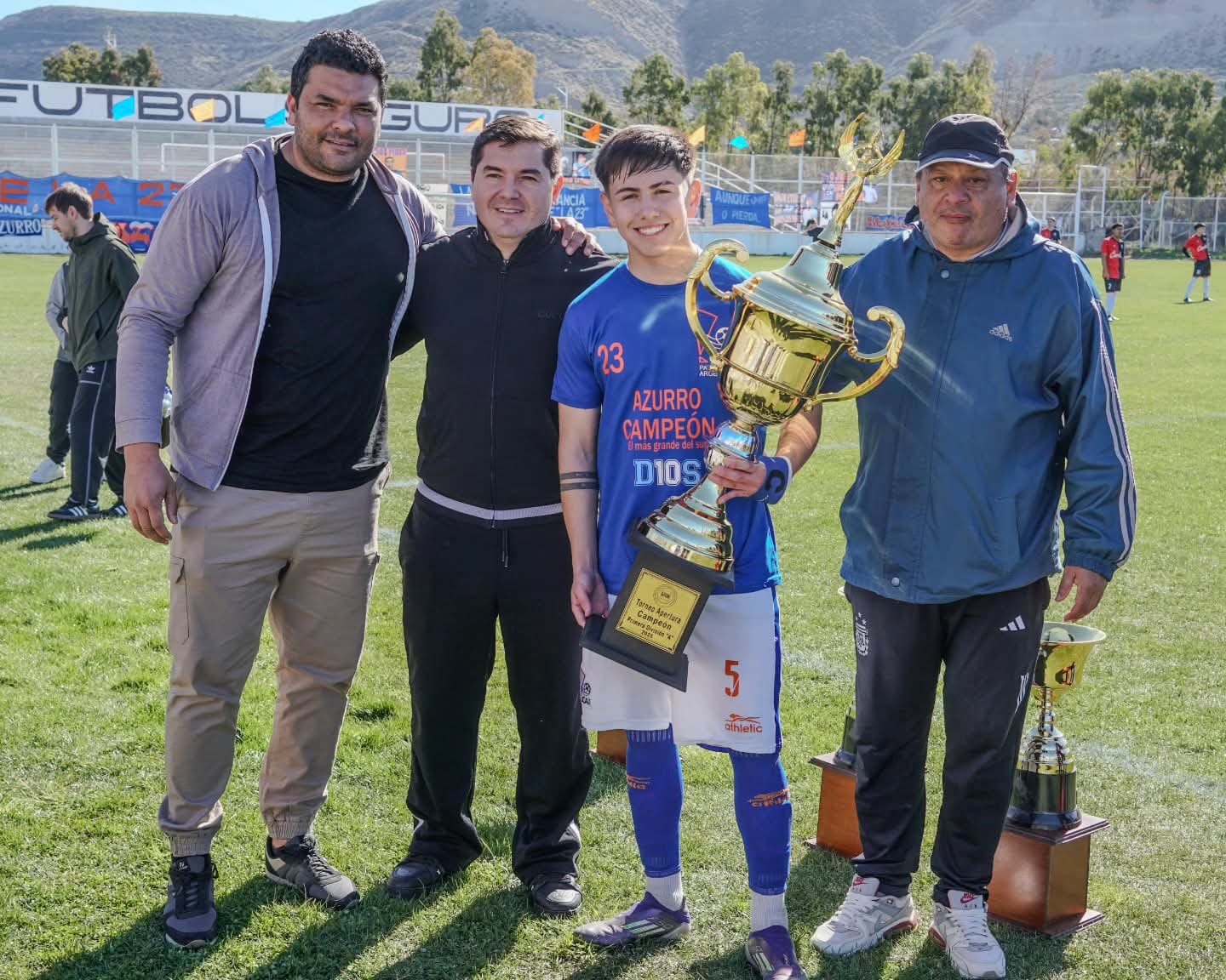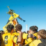 En manos del Presidente Héctor ‘Pato’ Millar y miembros de la Comisión Directiva de la Liga de Fútbol de Comodoro, la Comisión de Actividades Infantiles recibió el trofeo del campeonato este domingo en el Estadio Municipal tras ganar el certamen con una fecha de antelación.