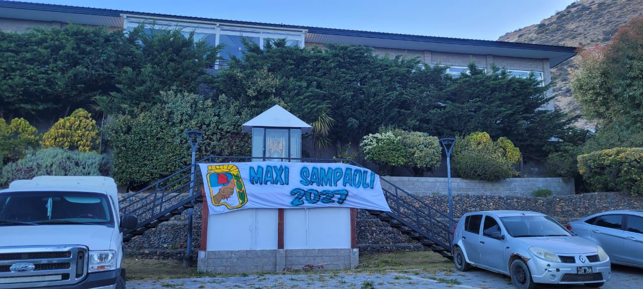 El cartel, con la leyenda “Maxi Sampaoli 2027”, marca un dato político significativo: el inicio de los movimientos internos de cara a la próxima elección.