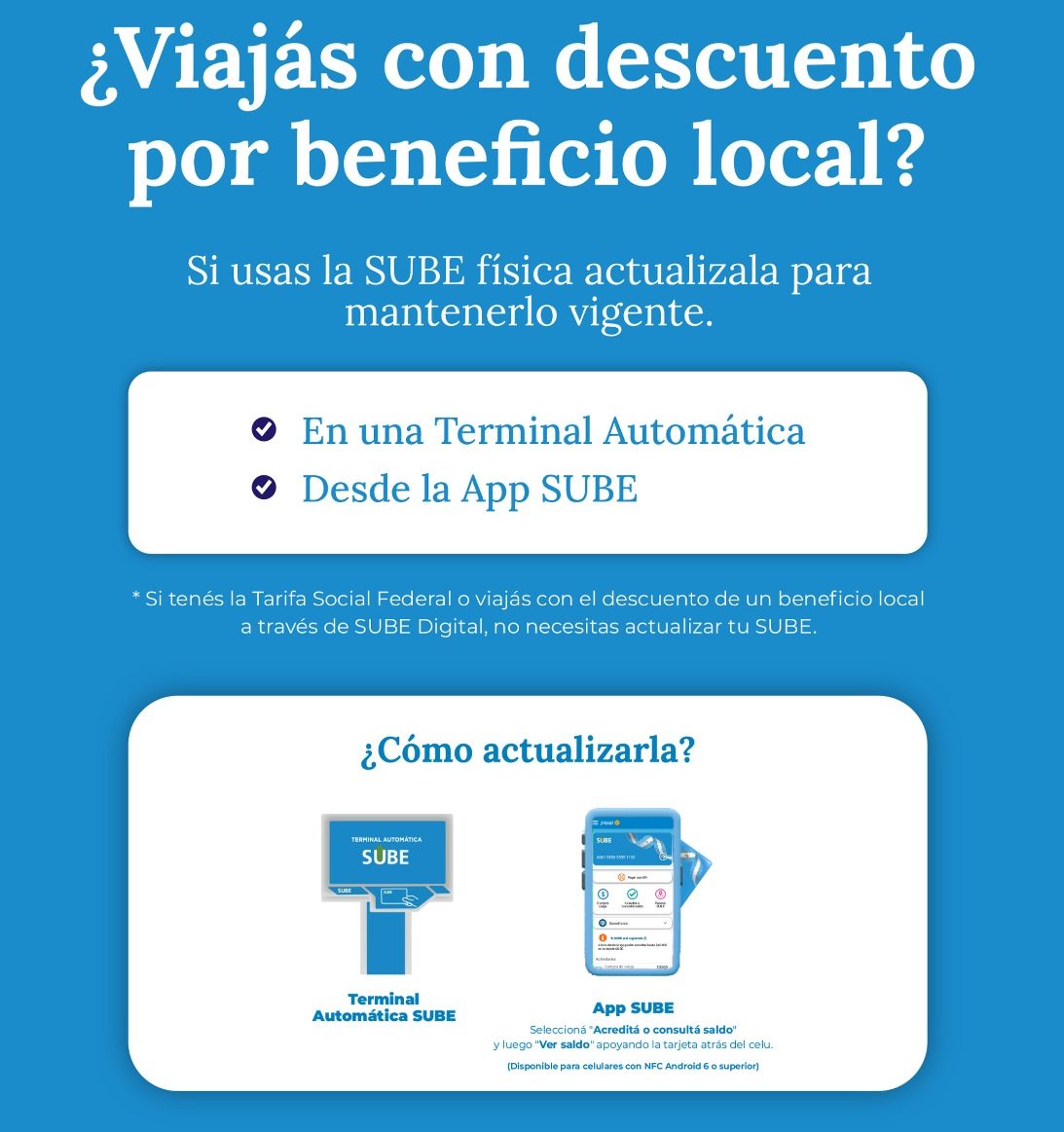 Desde SUBE indicaron que el trámite de actualización es sencillo y puede realizarse desde la aplicación SUBE, en las Terminales Automáticas o directamente en los colectivos que cuenten con el sistema “Atributo a Bordo”. En todos los casos, el procedimiento es rápido y gratuito, y permite garantizar que las tarifas diferenciales continúen activas en cada viaje.