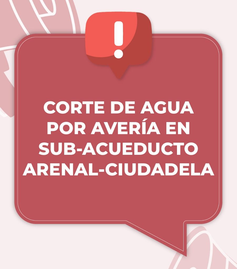 CORTE DE AGUA EN SIETE BARRIOS POR AVERÍA EN EL SUB-ACUEDUCTO ARENAL – CIUDADELA