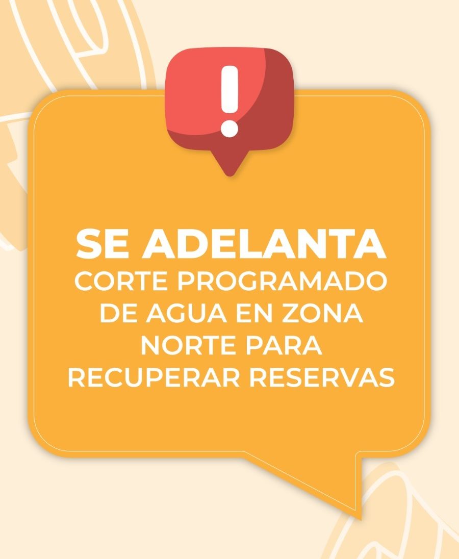 Hoy, viernes 06 de febrero, se adelanta la interrupción del suministro desde las 11hs. y por un lapso de 24hs., en Zona Norte, para recuperar las reservas de Puesto La Mata.