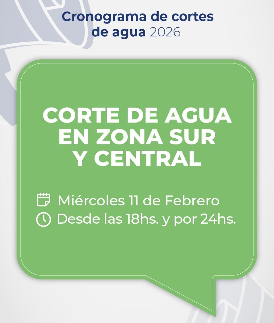 Hoy, miércoles 11 de febrero, desde las 18hs. y por un lapso de 24hs., se interrumpe el suministro de agua en Zona Sur y Central para recuperar las reservas de Puesto La Mata.