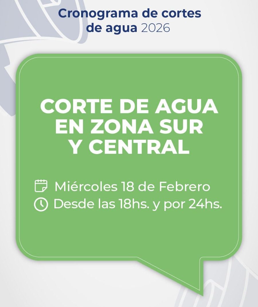 Hoy, miércoles 18 de febrero, desde las 18hs. y por 24hs, se interrumpe el suministro de agua en Zona Sur y Central, para recuperar las reservas de Puesto La Mata.