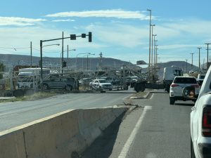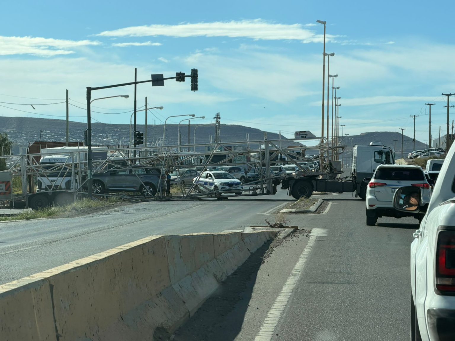 Sucedió en la Av. Yrigoyen a la altura de Surgas cuando un camión que transporta automóviles quiso ingresar a la ruta mano al norte, desde la calle Julio Argentino Cabezas y no le dio el ángulo de giro por lo quedó cruzado perfectamente en la mitad de la calzada.